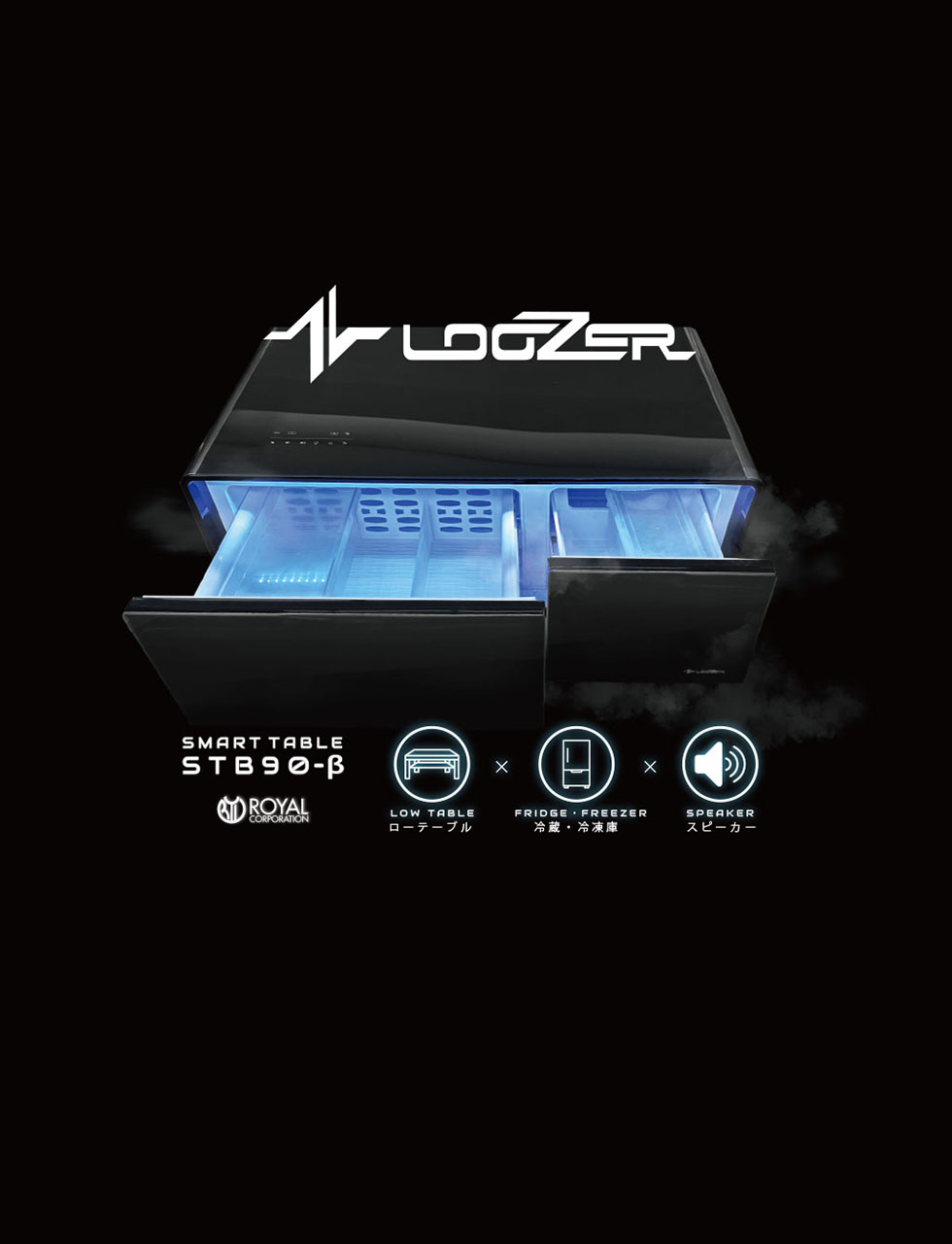 新型スマートテーブル「STB90-β」は、テーブル×冷蔵庫×スピーカーの多機能性をそのままに、新たに冷凍庫を搭載しました。これにより、STB90-βはあらゆるニーズに対応するさらに使いやすく便利な家具となりました。冷蔵庫と冷凍庫の両方を備えたSTB90-βは、食材や飲料、化粧品を適切な温度で保管するだけでなく、アイスクリームなど凍らせた食品を長期保存できます。また、高品質の内蔵スピーカーにTVやスマートフォンを繋いで楽しむことも可能です。この革新的なスマートテーブルは、家庭やオフィスでの生活をさらに便利で快適なものにします。